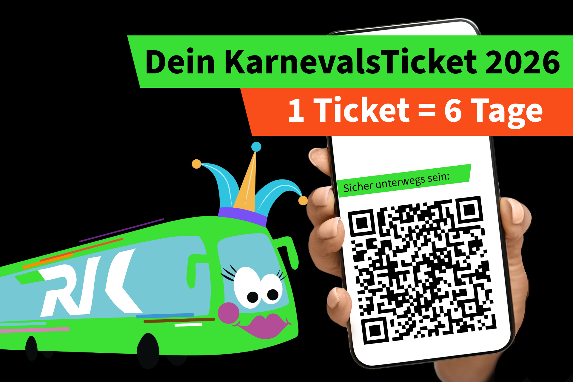 Wer an den Karnevalstagen närrisch unterwegs ist, nutzt das KarnevalsTicket. Es gilt im Raum des Verkehrsverbund Rhein-Sieg (VRS) für beliebig viele Fahrten im Zeitraum zwischen Weiberfastnacht (12. Februar 2026) bis Veilchendienstag (17. Februar 2026, bis 3:00 Uhr des Folgetags). Das KarnevalsTicket kostet 32,40 € und ist für eine Person gültig. Kinder bis einschließlich fünf Jahre werden unentgeltlich befördert.
