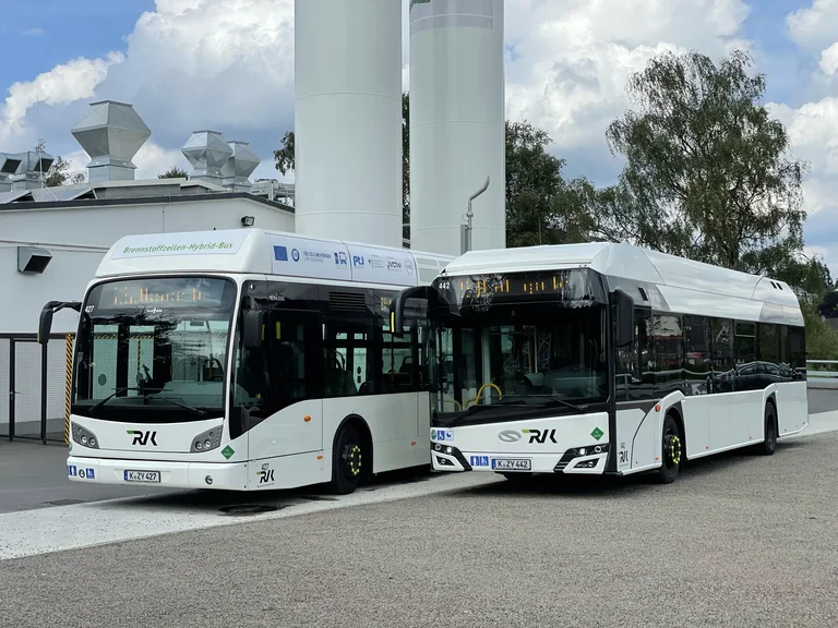 Wasserstoff | Lieferungen in 2021, 2022 und 2023Im Rahmen einer in 2020 erfolgten Ausschreibung ging der Zuschlag an die Firma Solaris Bus & Coach. Somit ist neben dem Hersteller Van Hool nun auch ein neuer Anbieter Teil der RVK Fuhrpark-Familie: Der Solaris Urbino 12 hydrogen von der Firma Solaris.